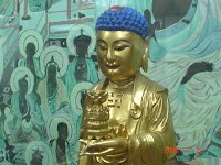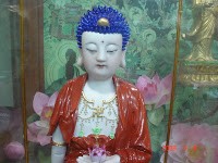 回國後居然在一個我常親近的佛堂看到兩尊供奉在一起的佛像,胸前的卍字,一個是右旋,一個是左旋(如圖)。再度澄清了我的疑惑。後來也在幾間寺廟的玻璃門窗上看到畫有卍字,從室內看跟從室外看,旋轉的方向剛好相反。