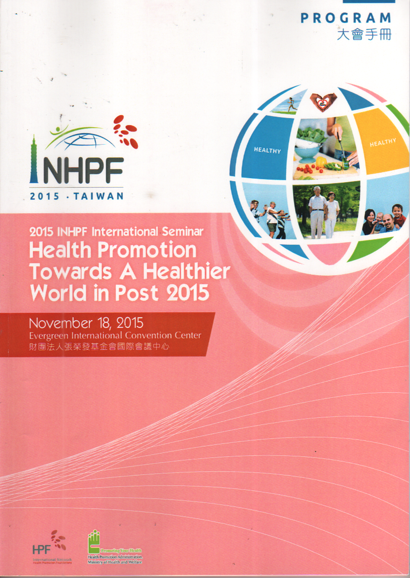 其對抗NCD 的目標,包括癌症、糖尿病、心血管疾病、慢性呼吸道疾病等。我國衛生福利部國民健康署(國健署),於2015 年11 月18 日主辦International Network of HealthPromotion Foundation (INHPF) ( 國際健康促進基金會網絡)的年會,邀請國內外專家學者及衛生官員,以“Health Promotion Towards A HealthierWorld in Post 2015”( 後2015年代健康促進目標:步向更健康的世界)為題,深入探討。