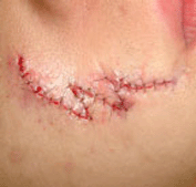 較深的傷口,可請醫師協助縫合,以促進傷口癒合,防止不規則疤痕的形成,但視受傷部位,須於一定的期間內拆除縫線,否則「蜈蚣狀」縫線疤痕會較明顯。