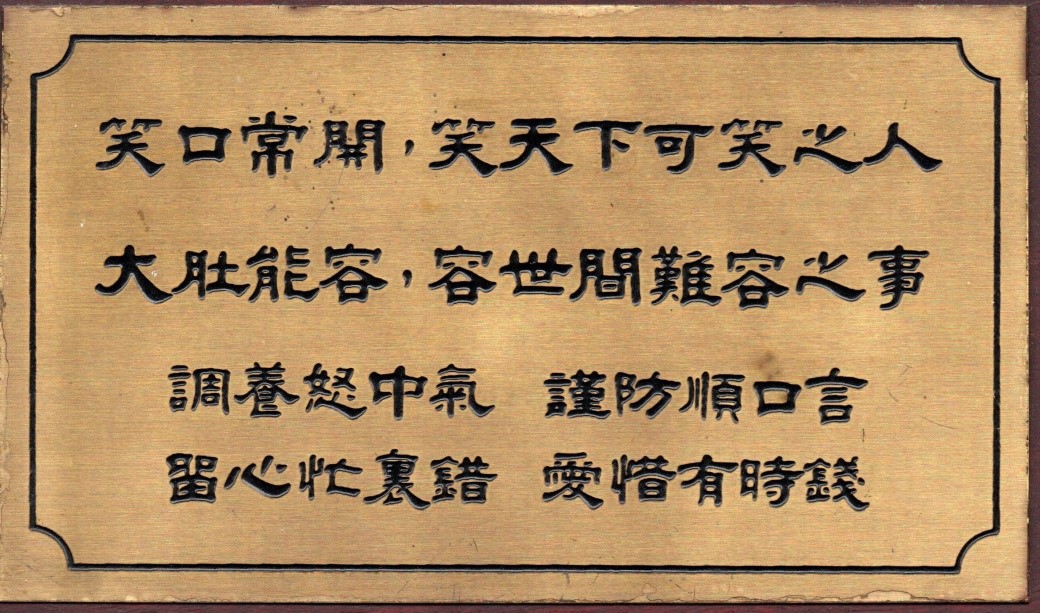 〈彌勒佛讚〉:「慈心展笑顏 廣結眾緣 無不包容」。因此在彌勒佛殿裡常可在慈心展笑顏的佛像兩旁,看到這樣讚嘆的對聯:「笑口常開,勸念佛;大肚能容,不生氣」、「大肚能容,容天下難容之事;開口便笑,笑世上可笑之人」、「大肚能容,了卻人間多少事;笑口常開,笑盡天下古今愁」、「笑口常開,笑天下可笑之人;大肚能容,容世間難容之事」。 哈佛大學推薦20個讓人快樂的習慣就包括要經常笑,要經常說謝謝。人生苦短,一輩子也只有三萬天,與其愁眉苦臉,天天怨東怪西,讓自己及周遭的人,都過得很辛苦,很難過,倒不如養成笑口常開,熱心助人,動手動腦,利人利己,過著天天快樂的生活!吃得下,睡得著,夫復何求?讓開心成為你生活中的一種習慣吧! |