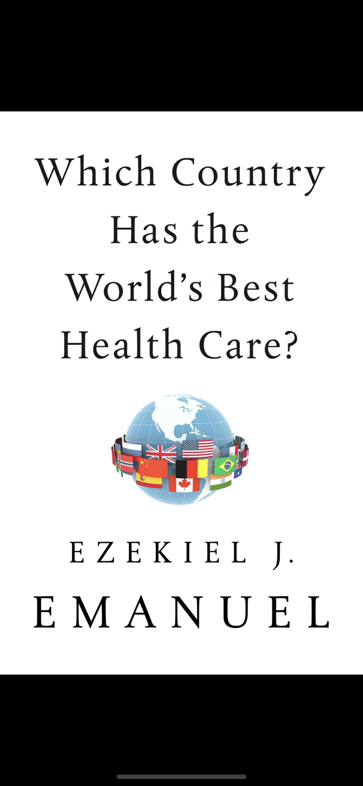 賓州大學的副教務長及醫學院教Ezekiel Emanuel,出版新書題為:Which Country Has the World’s Best Health Care?(那些國家有世界上最好的健康照護?)(如圖)。