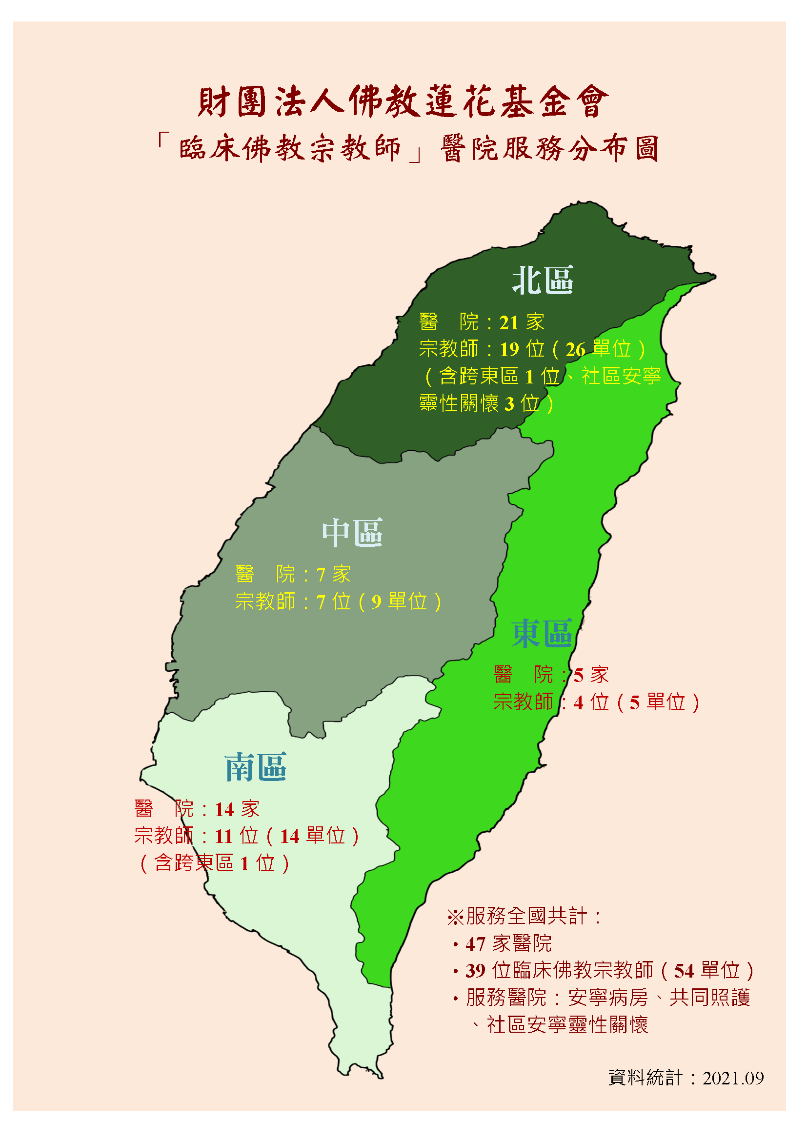 (圖6)目前有39位臨床佛教宗教師在全台47家醫院服務。