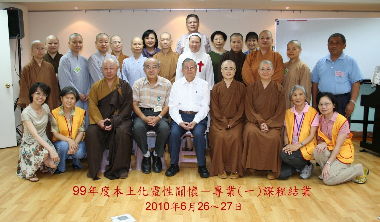 為了提昇安寧照顧的靈性關懷品質,蓮花基金會自1998年與台大安寧緩和病房合作,開辦佛教史上首創的臨床佛教宗教師的培訓制度(圖4),(初期得到屏東一如淨舍會焜法師的資助),傳往日本及馬來西亞,並於今年擴大成立<台灣臨床佛教宗教師培訓中心>。